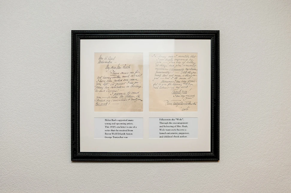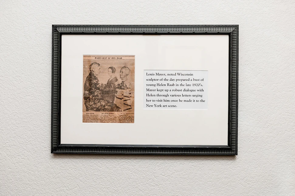 Another piece in this area specifically commemorates actress Agnes Moorehead and her frequent visits to Dawn Manor for tea with Helen Raab. The Mooreheads spent much of their life in nearby Reedsburg.